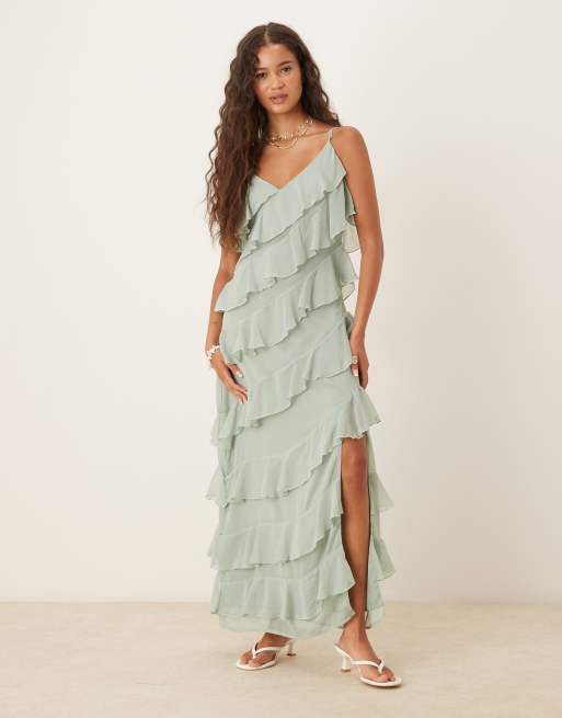 VILA - Maxi-jurk met asymmetrische ruches en zijsplit in saliegroen