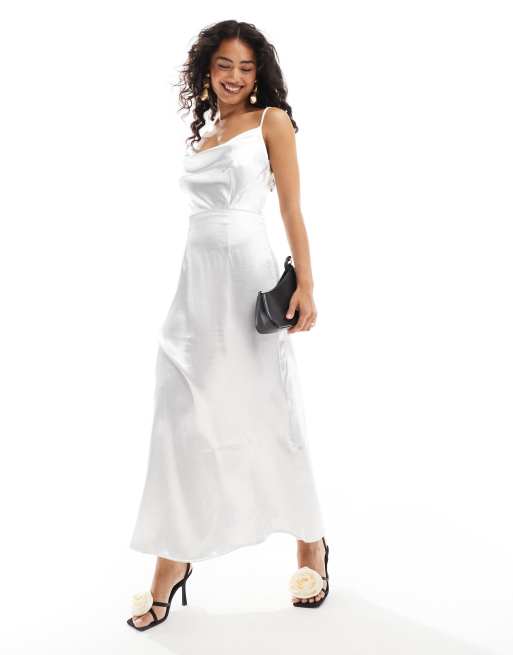 Vila - Maxi-jurk van satijn met gedrapeerde halslijn in zilverwit
