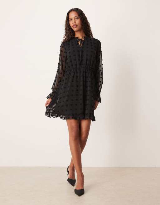 VILA - Mini jurk van dobby mesh met lange mouwen in zwart