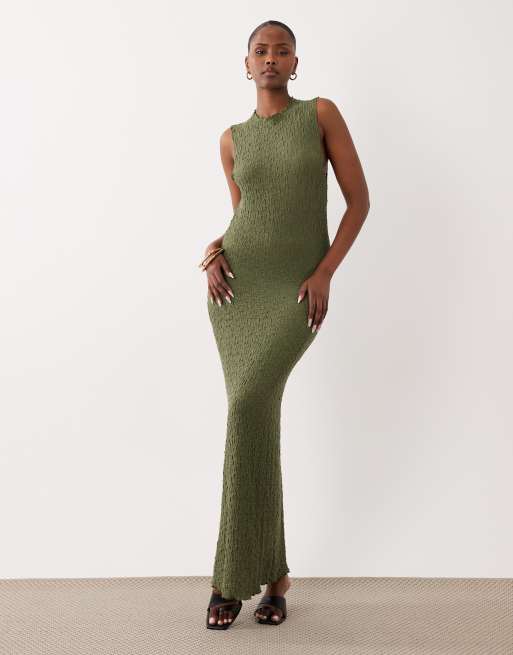 VILA - Mouwloze maxi jurk van jersey met textuur in olijfgroen