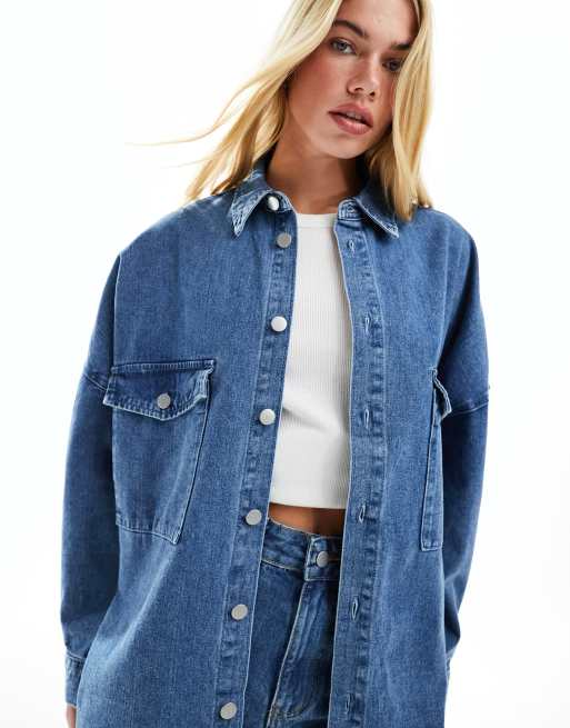 Vila - Oversized denim overhemd in medium blauwe wassing, deel van co-ord set
