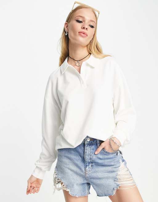 Vila - Poloshirt met lange mouwen in crème