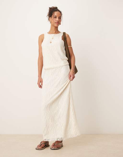 VILA - Set van tanktop en maxi rok met textuur in crème