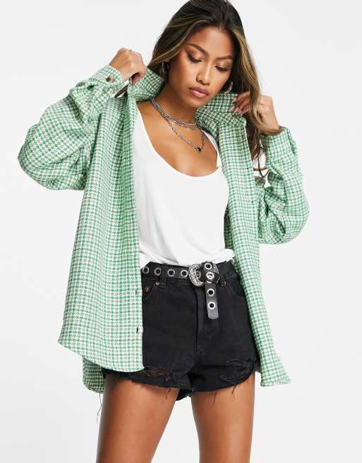 Vila - Shacket met lange mouwen in groene print