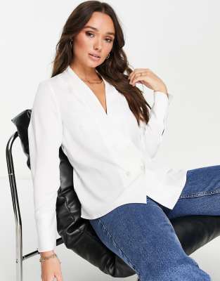 Vila - Zachte satijnen blouse met double breasted knoopsluiting in wit