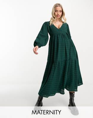Violet Romance - Zwangerschapskleding - Gelaagde midaxi jurk met overslag aan de voorkant in groenblauw