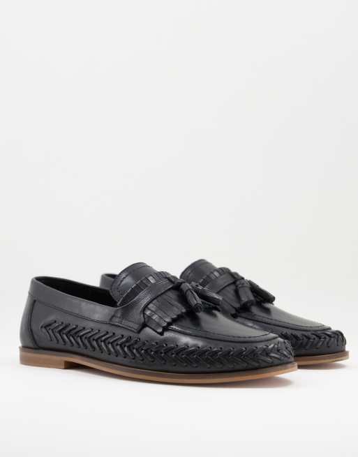 Walk London - Arrow - Geweven loafers van leer met kwastjes in zwart