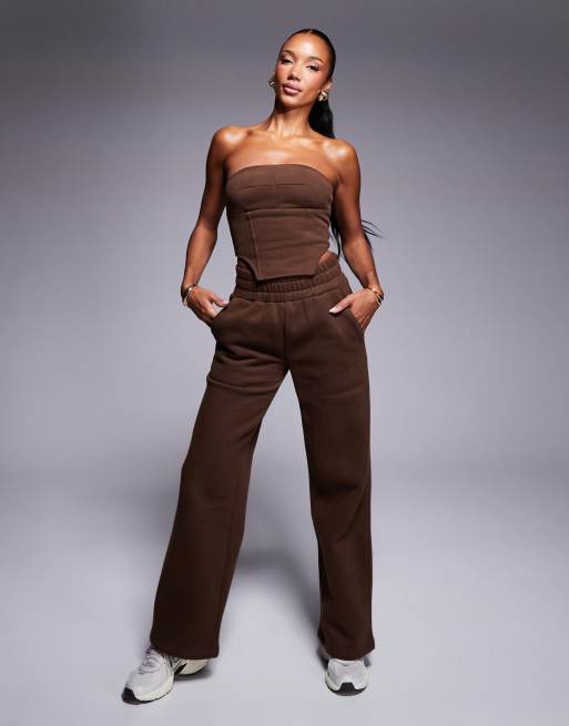 Wander Doll - Everyday - Exclusives - Joggingbroek met fleece aan de binnenkant en wijde pijpen in bruin, deel van co-ord set