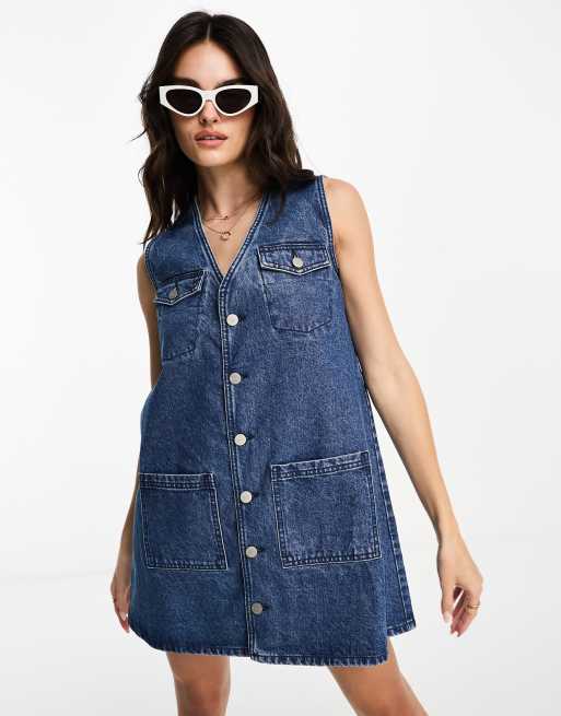 Waven - Malle - Denim mini giletjurk in indigo wassing