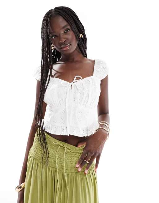 Wednesday's Girl - Cropped cami met gestrikte voorkant in wit