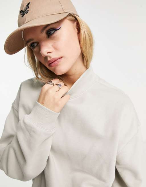 Essence - Standaard sweatshirt met coltrui-look in lichtgrijs