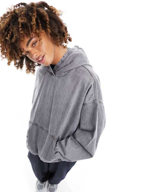 Weekday - Altadena - Oversized denim hoodie in grijs met wassing
