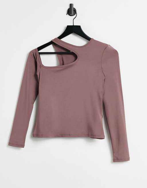 Weekday - Ambia - Asymmetrische top met lange mouwen in bruin