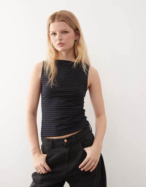 Weekday - Annie - Mouwloze zachte gestreepte top met boothals in marineblauw, exclusief bij ASOS