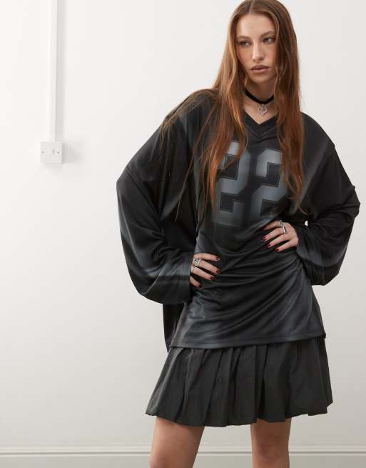 Weekday - Disa - Oversized T-shirt van nylon met lange mouwen, V-hals en grafische sportprint