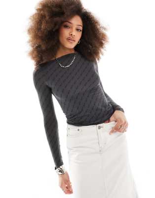 Weekday - Doorschijnende top met lange mouwen en cursieve print in zwart