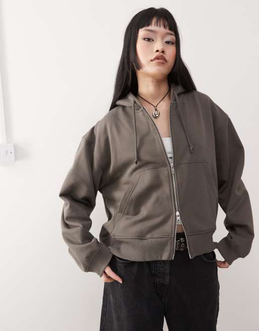 Weekday - Essence - Hoodie met ritssluiting en rechte pasvorm in donker molbruin