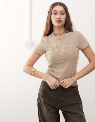 Weekday - Freja - T-shirt met jaren 90-pasvorm en applicatie in beige met wassing