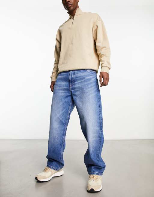 Weekday - Galaxy - Losvallende jeans met rechte pijpen in golfblauwe wassing