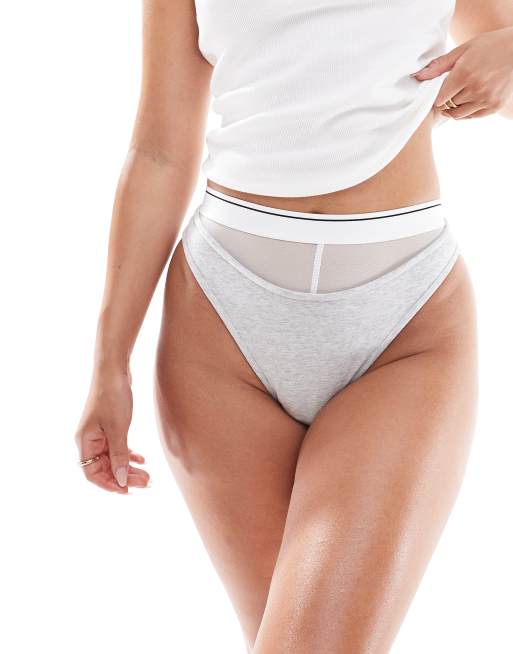 Weekday - Gelaagde Braziliaanse slip van katoen en mesh in grijs