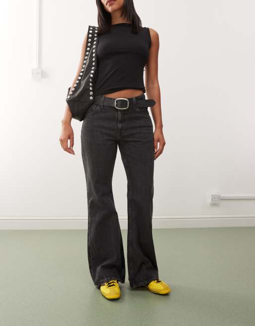Weekday - Helix - Flared jeans met lage taille en wijde pijpen in versleten zwarte wassing
