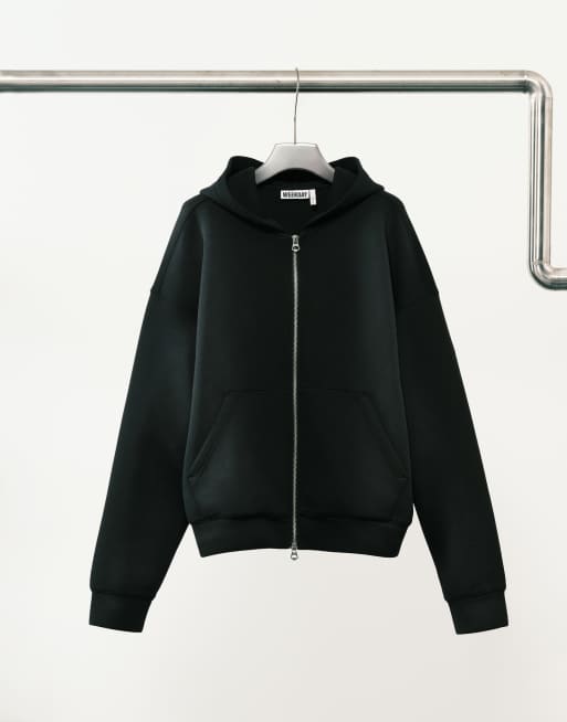 Weekday - Hoodie van scuba-achtige stof met rits in zwart met wassing, deel van co-ord set