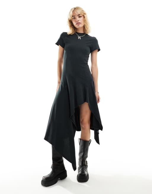 Weekday - Joline - Asymmetrische midi T-shirtjurk in zwart met wassing