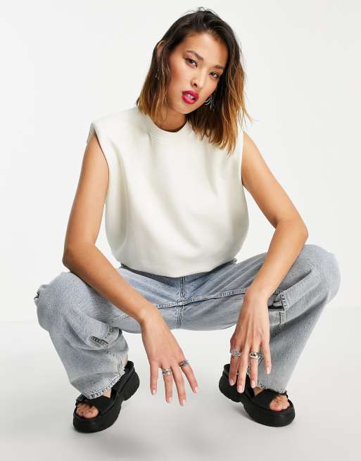 Weekday - Kai - Mouwloos katoenen sweatshirt in gebroken wit - WHITE