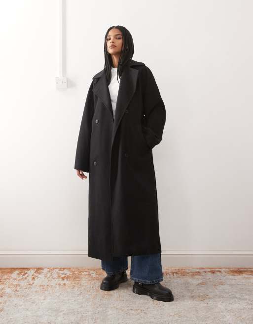 Weekday - Kia - Oversized jas van wolmix met gestrikte taille in zwart
