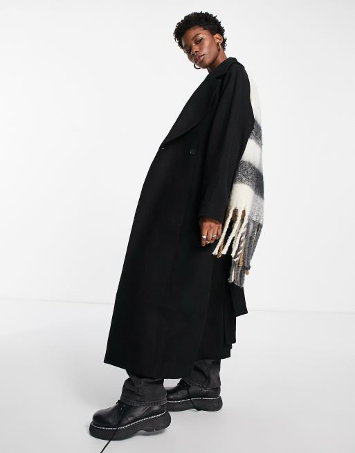 Weekday - Kia - Wollen jas met riem in zwart - BLACK