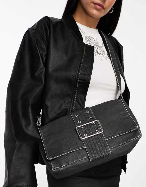 Weekday - Kylie - Denim schoudertas met gesp in zwart