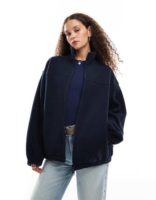 Weekday - Lea - Oversized sweatshirt van borg met rits in marineblauw