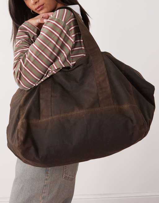 Weekday - Oversized tote tas van gewaxt canvas in donkerbruin