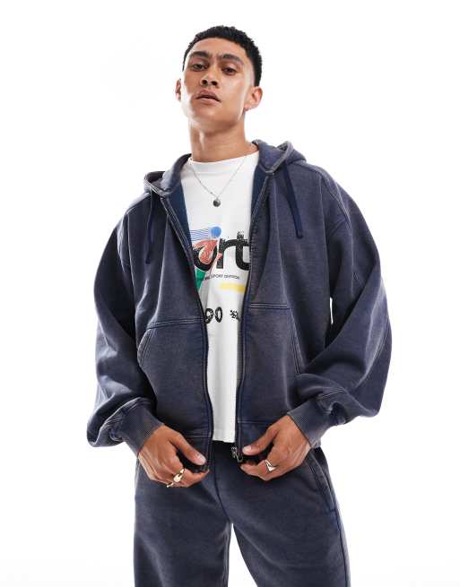 Weekday - Roman - Hoodie met rits en siernaden in verwassen blauw, deel van co-ord set