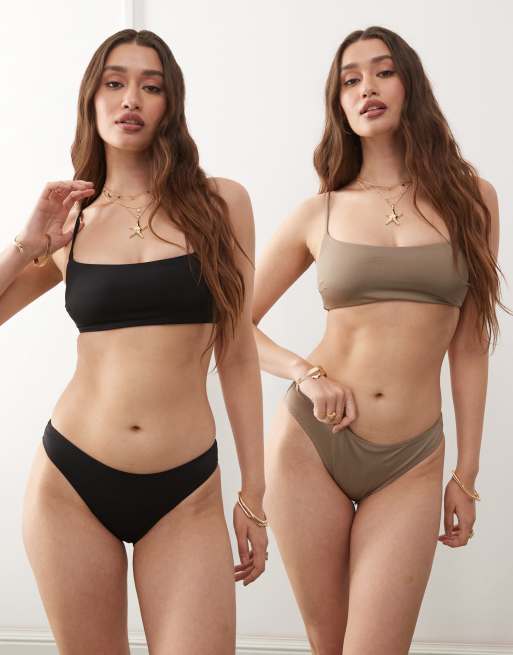 Weekday - Set van 2 bandeau-bikinitops in zwart en taupe