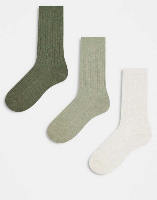 Weekday - Set van 3 paar geribbelde sokken in gebroken wit en kaki