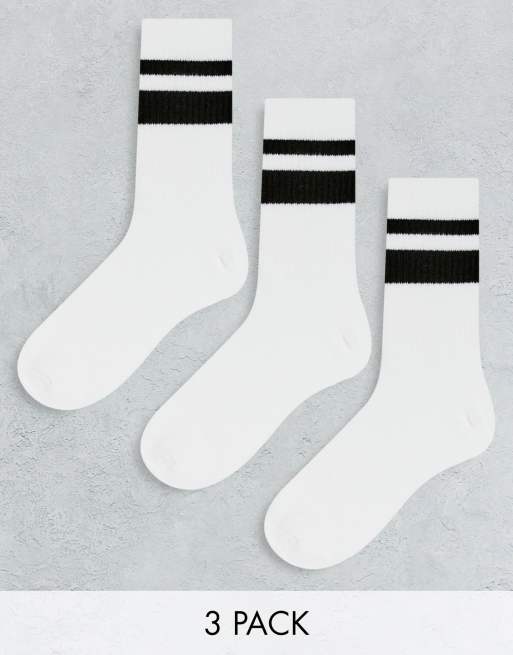 Weekday - Set van 3 paar sportsokken in wit met zwarte strepen