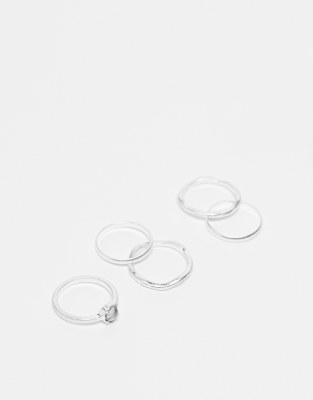 Weekday - Set van 5 ringen met siersteentje in zilver
