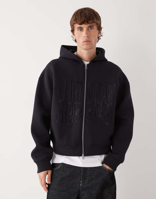 Weekday - Simon - Hoodie van stof in scuba-stijl met grafische print in donkerblauw