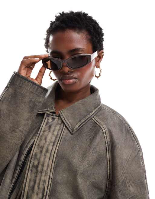 Weekday - Slide - Smalle zonnebril in bruin