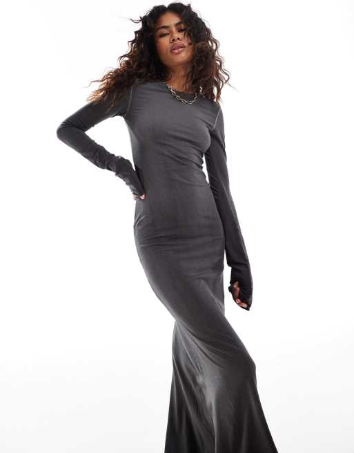 Weekday - Slim-fit maxi jurk met lange mouwen in grijs met kleurverloop
