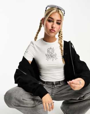 Weekday - Slim-fit T-shirt met print in wit