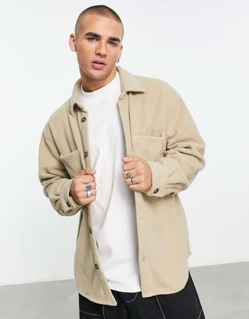 Weekday - Werk-overshirt van fleece in beige