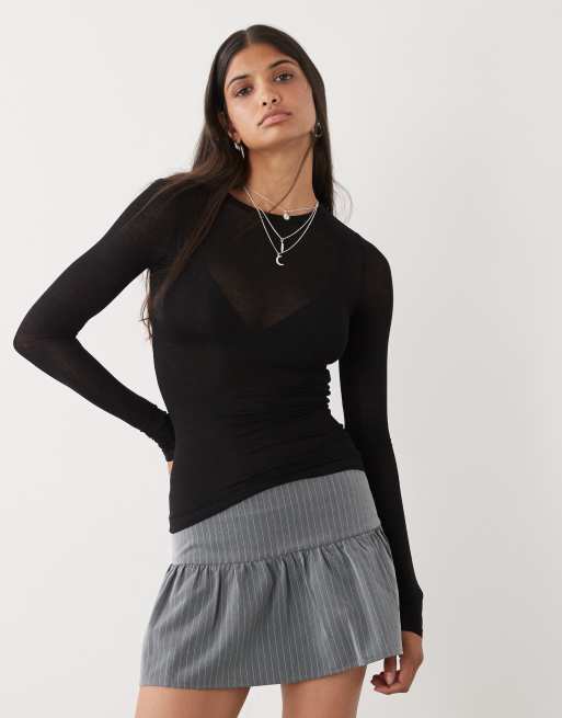 Weekday - Zacht, half-doorschijnend T-shirt met lange mouwen in zwart