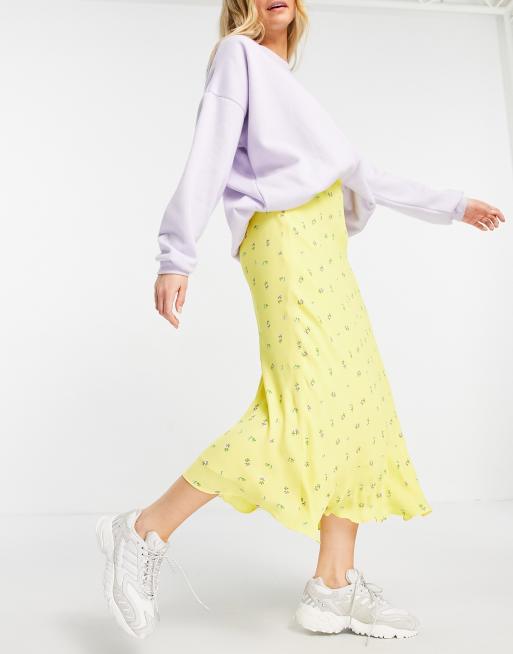 Whistles - Forget Me Not - Midirok van schuin gesneden stof in geel met vergeet-me-nietjes
