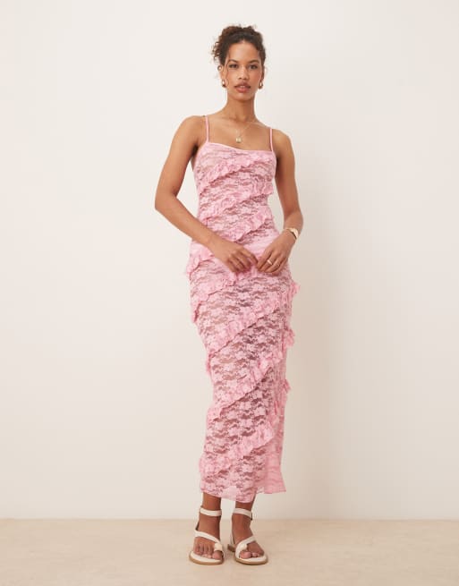 Wild Lovers - Kanten maxi strandjurk in roze