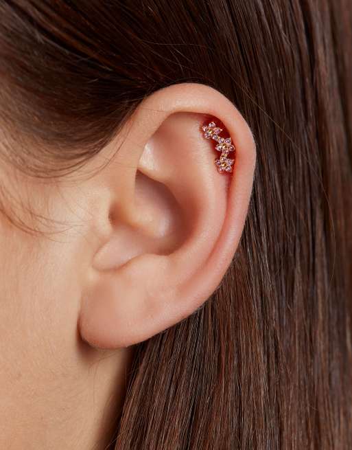 With Bling - Labret piercing met oorsieraad met roze bloem verguld met goud