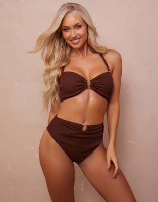 Wolf & Whistle x Abby Benson - Vollere buste - Bikinitopje van kreukelstof met gouden afwerking in bruin