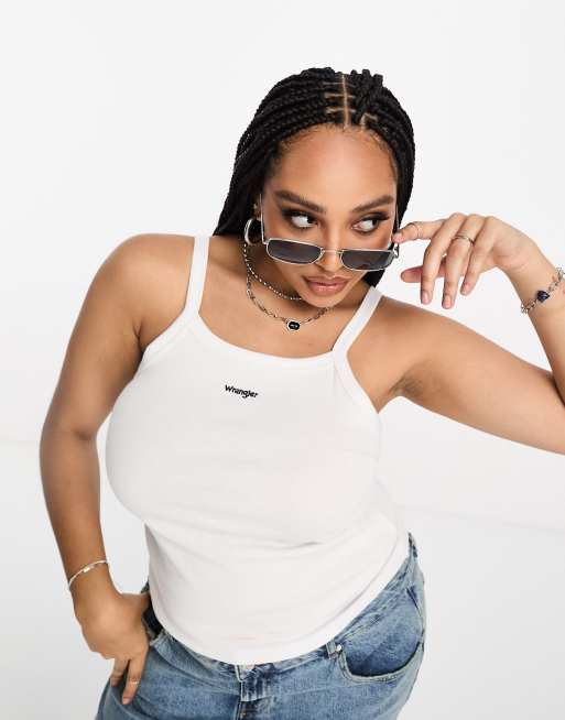 Wrangler Plus - Geribbelde tanktop met logo in wit