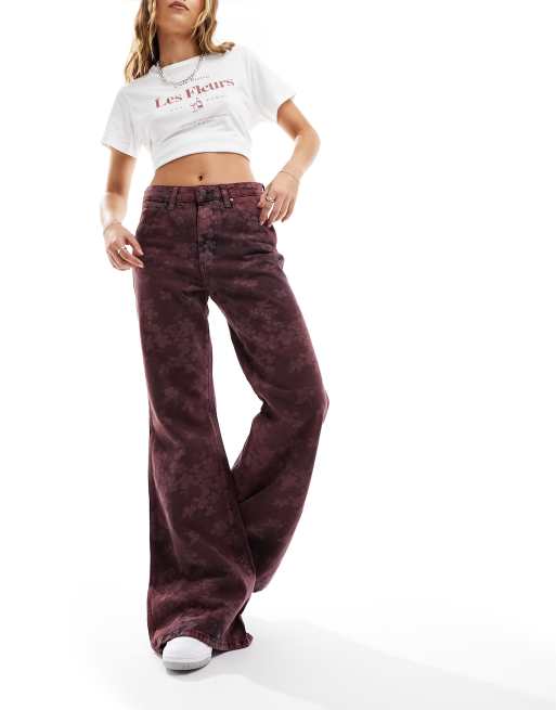 Wrangler - Flared jeans in bordeauxrode bloemenprint